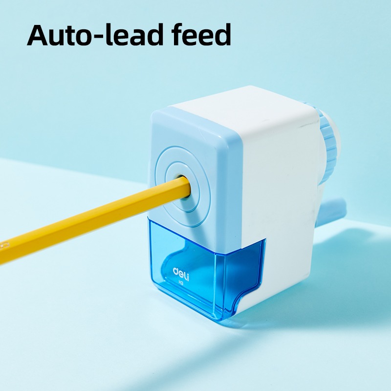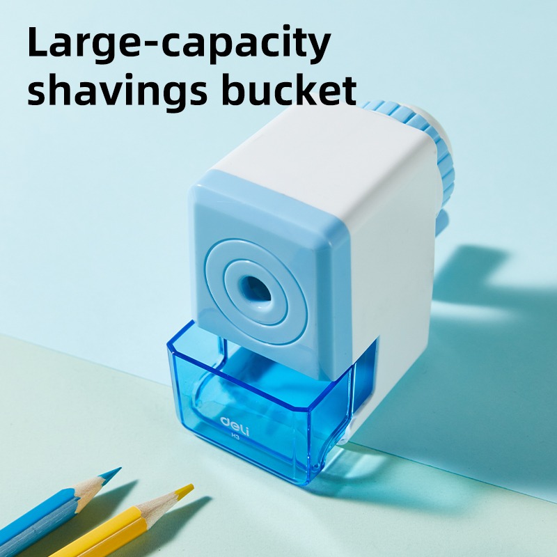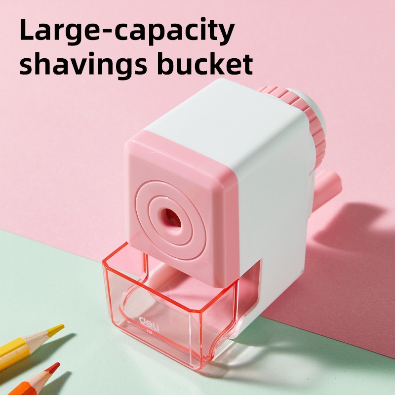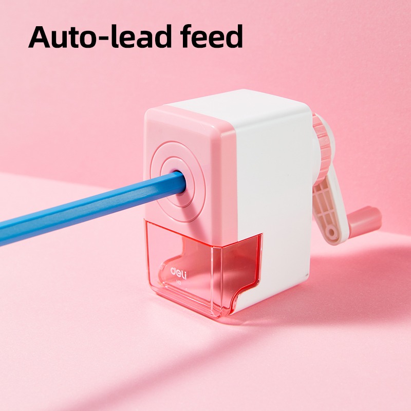 Gọt chì quay tay Deli EH3 màu pastel xinh xắn, lưỡi sắc bén, hộp chứa mùn lớn, tay quay nhẹ, tự động đưa bút nhanh và mịn, giữ ngòi không gãy.