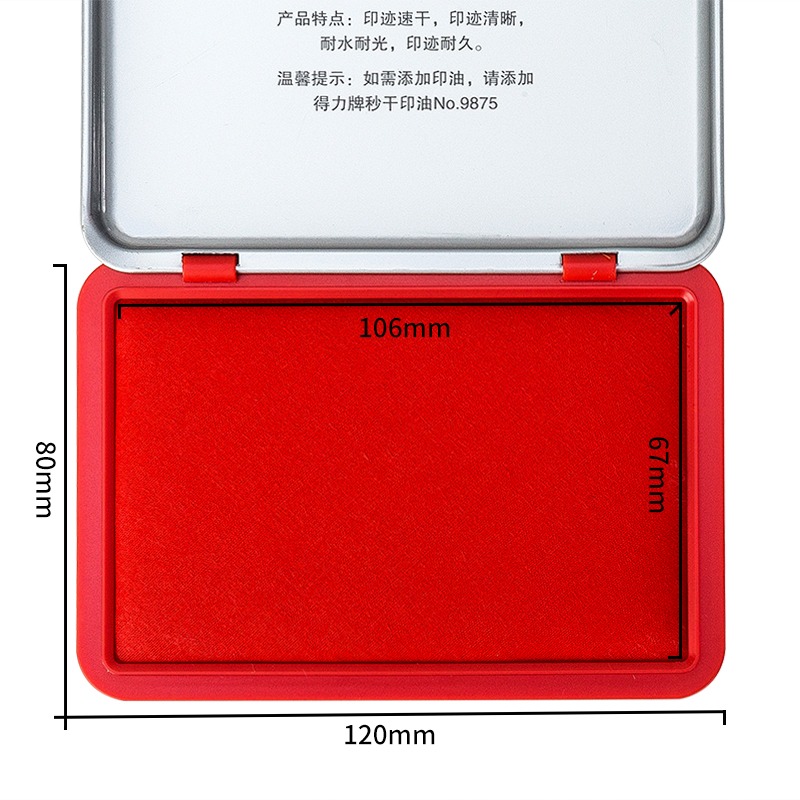 Hộp mực dấu đỏ Deli 9892 là dòng hộp mực dấu cao cấp, chuyên dùng cho các loại dấu văn phòng như dấu gỗ, dấu liền mực, dấu nhựa và các loại dấu tròn thông dụng. Với lượng mực vừa đủ và bề mặt mút chất lượng, sản phẩm mang đến khả năng thấm mực đều, giúp mỗi lần đóng dấu đều rõ nét và không bị nhòe.