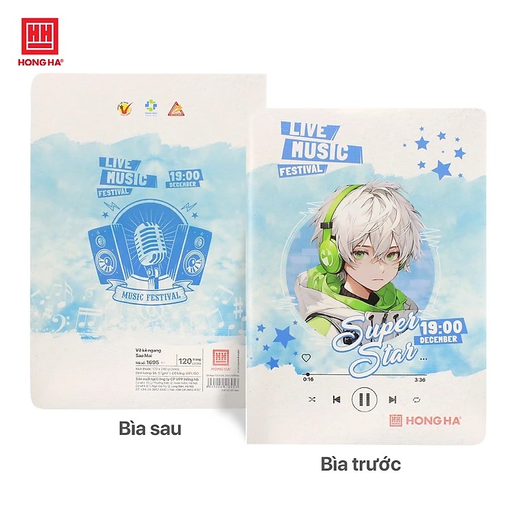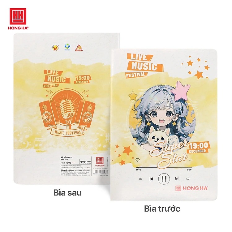Lấy cảm hứng từ âm nhạc, dòng sản phẩm Vở kẻ ngang 120 trang Hồng Hà 1695 Sao Mai Live Music không chỉ là một cuốn vở – mà còn là một biểu tượng của năng lượng sáng tạo, khuyến khích tinh thần trẻ trung, say mê học hỏi của học sinh, sinh viên Việt Nam.