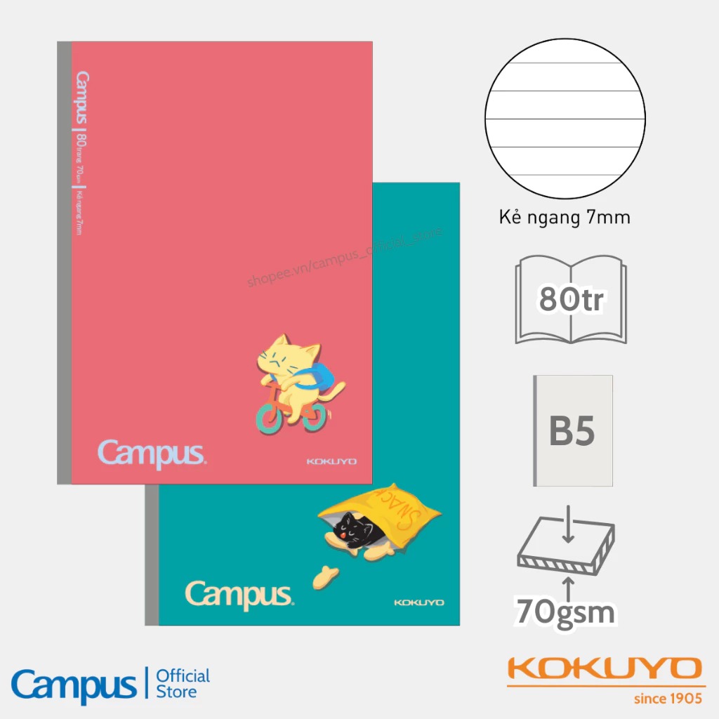 Bìa được làm từ chất liệu giấy cao cấp cán mờ, có khả năng chống bám bẩn nhẹ và hạn chế cong góc trong quá trình sử dụng. Logo Campus in nổi bật ở mặt trước, thể hiện sự tinh tế và uy tín của thương hiệu văn phòng phẩm hàng đầu Nhật Bản – Kokuyo.