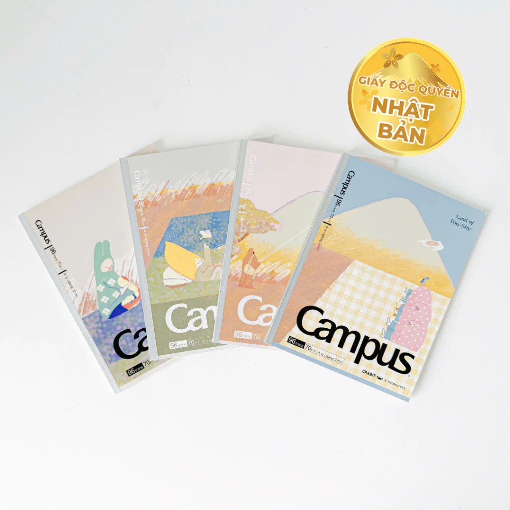 Bộ sưu tập Land of Too-Shy Campus mang phong cách nghệ thuật mềm mại, sử dụng gam màu pastel dịu mắt cùng họa tiết minh họa dễ thương. Mỗi trang bìa như một bức tranh kể về vùng đất yên bình, nơi những nhân vật nhỏ bé sống chậm và mộng mơ – rất phù hợp với những ai yêu thích phong cách nhẹ nhàng, thanh lịch.