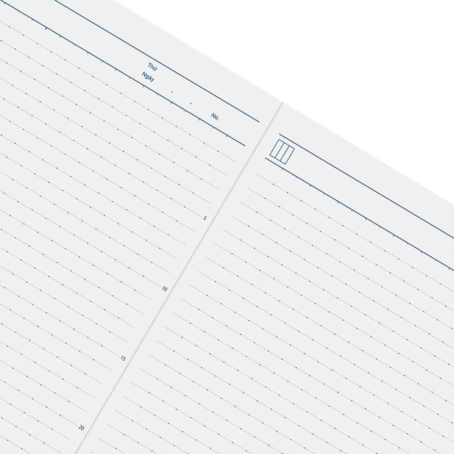 Các dòng kẻ ngang 7mm có dấu chấm mờ tại rìa, giúp căn dòng và trình bày nội dung gọn gàng, thích hợp cho việc học, ghi chú, bullet journal, hoặc viết kế hoạch cá nhân.