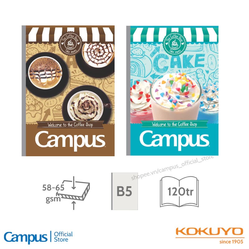 Vở kẻ ngang Coffee Shop Campuscó ba phiên bản: 80, 120 và 200 trang, khổ B5 tiêu chuẩn (179 x 252 mm), đáp ứng mọi nhu cầu sử dụng: