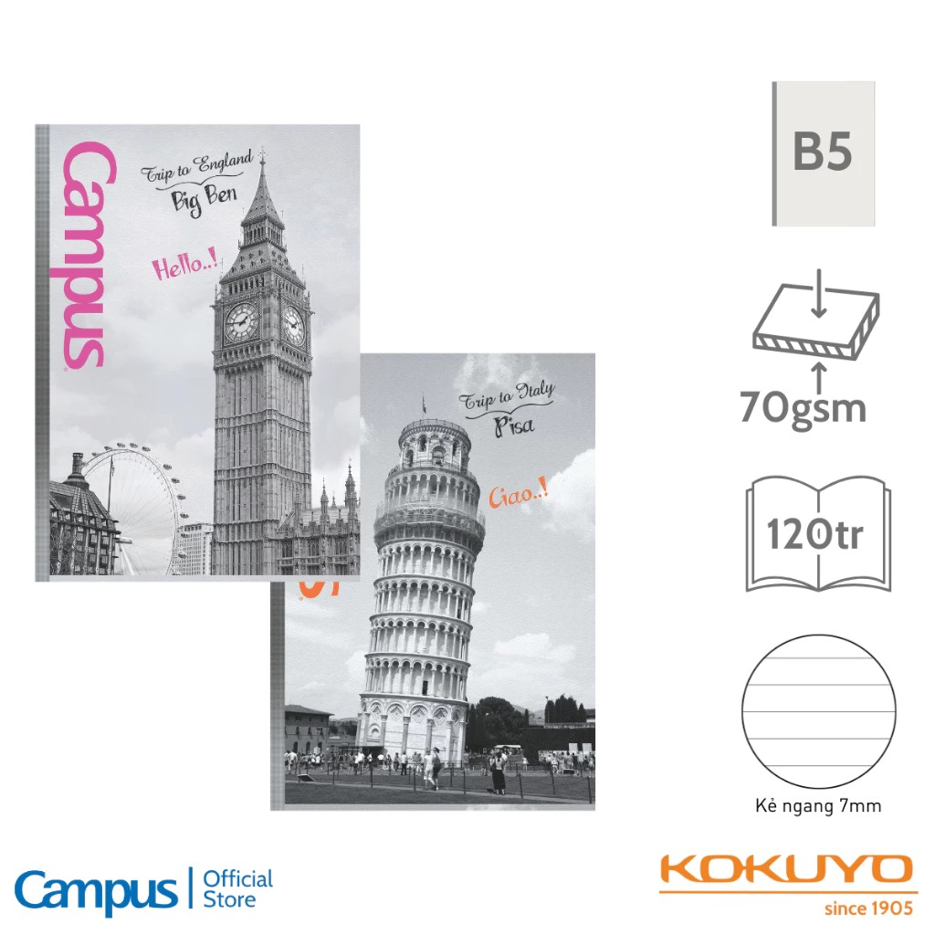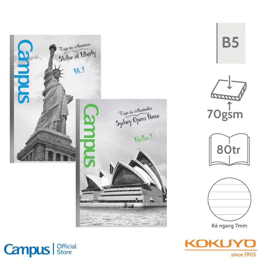Vở kẻ ngang Landscape Campus mang đến cảm hứng học tập và sáng tạo với thiết kế bìa độc đáo in hình các công trình nổi tiếng thế giới như Tháp Eiffel, Tượng Nữ thần Tự do hay Nhà hát Opera Sydney. Giấy 70gsm cao cấp dày dặn, trắng mịn, viết êm tay, không lem, không in sang trang sau. Dòng kẻ ngang đều đẹp, giúp chữ viết ngay ngắn và dễ trình bày. Có 3 lựa chọn 80, 120, 200 trang, khổ B5 nhỏ gọn – phù hợp học sinh, sinh viên và dân văn phòng yêu thích phong cách hiện đại, tinh tế chuẩn Nhật Bản.